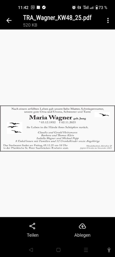 Maria Wagnergestorben am 2. November 2025